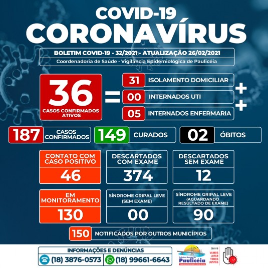 BOLETIM COVID-19 - 26 FEVEREIRO 2021