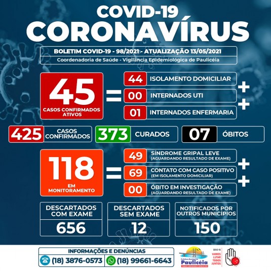 NOTÍCIA - BOLETIM COVID-19 - 13 MAIO 2021