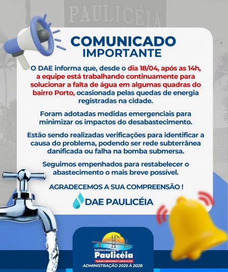 NOTÍCIA - DAE PAULICÉIA - COMUNICADO IMPORTANTE