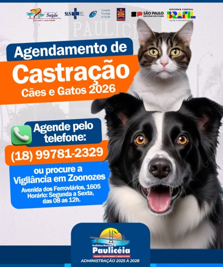 AGENDAMENTO DE CASTRAÇÃO Cães e Gatos 2026